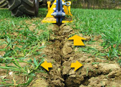 The Moledrainer in use over a collector pipe system. The channel created allows drainage into the collector drain.