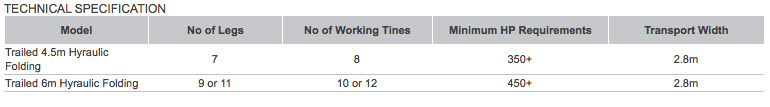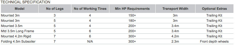 comprehensive 6m 11 leg trailed subsoiler. This range suits tractors from 150 to 500+ horse power.