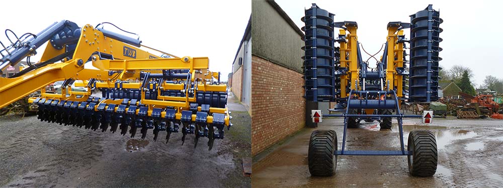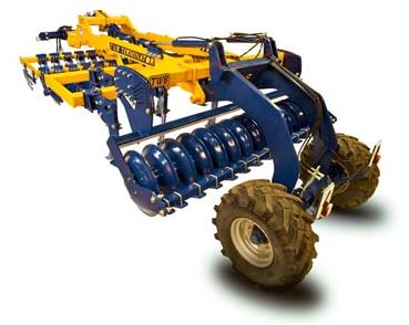 The two rows of 500mm dia cutaway discs on the TWB Terminator are capable of cutting, turning and levelling the ground in front of the subsoiler legs, and
