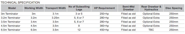 of work allowing the subsoiler legs to work down to 500mm as a full subsoiler. With the addition of the low-draft legs and the open framework the Terminator is also a proven
